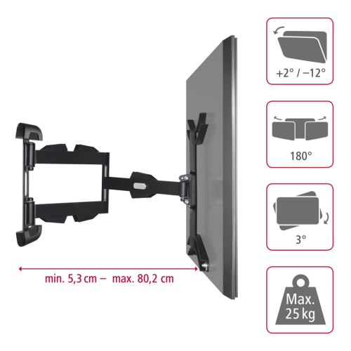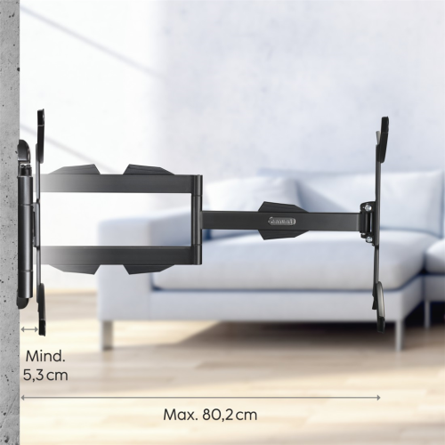 • dlhé rameno umožňuje otočiť aj väčšiu TV o 90 ° (kolmo k stene)