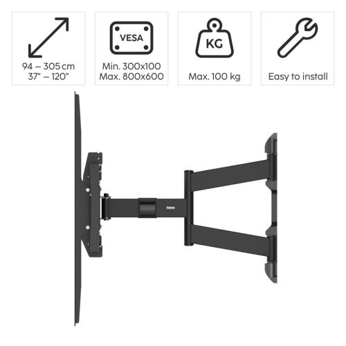 Hama nástenný držiak TV až 120", 800x600, pohyblivý, 100 kg