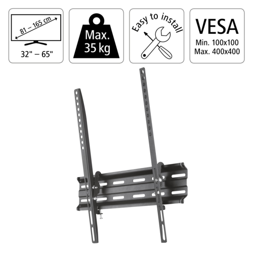- naklápací držiak pre TV obrazovky s uhlopriečkou cca 32 až 65 palcov (81 až 165 cm) - VESA max. 400x400, nastaviteľné ramená pre akýkoľvek menší rozstup závitov - ľahké zavesenie TV pomocou dvoch ramien - …