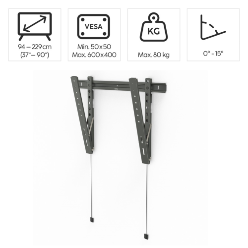 • naklápací držiak pre TV obrazovky s uhlopriečkou cca 37" až 90" (94 až 229 cm)