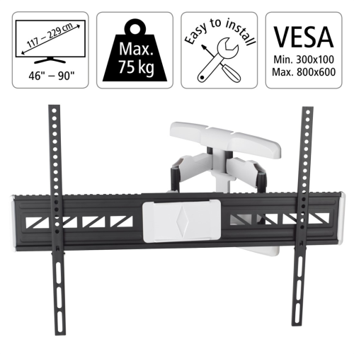Hama nástenný držiak TV XL, pohyblivý, 800x600, biela / čierna