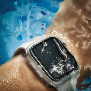 • priehľadný materiál; design Apple Watch zostáva viditeľný