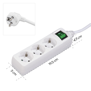 - predlžovací prívod s tromi zásuvkami a vypínačom - nemecký štandard zásuviek schuko (zemniace kontakty na okraji), vhodné pre bežne používané unischuko vidlice (nevhodné pre staršie okrúhle vidlice bez …