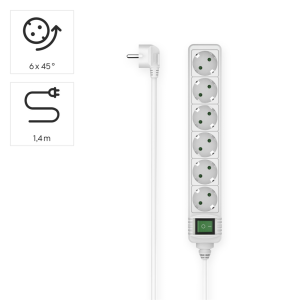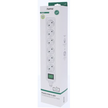 Hama predlžovací prívod s vypínačom, 6x zásuvka schuko, 1,4 m, biely