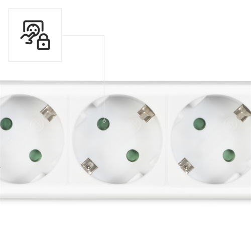 - predlžovací prívod so šiestimi zásuvkami a vypínačom - nemecký štandard zásuviek schuko (zemniace kontakty na okraji), vhodné pre bežne používané unischuko vidlice (nevhodné pre staršie okrúhle vidlice bez …
