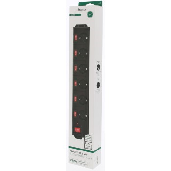 Hama predlžovací prívod XL s prepäťovou ochranou, 6 zásuviek schuko, 7 vypínačov, 1,4 m, čierna