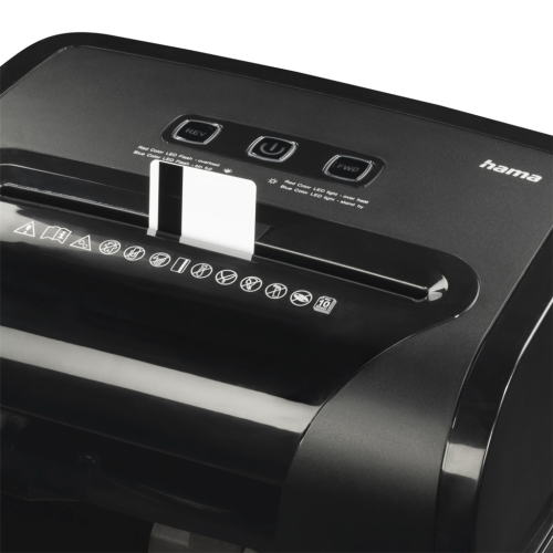 Skartovačka s krížovým micro rezom Hama Premium M10+ skartovanie 10 listov papiera DIN A4 (80 g/m2) naraz vhodná aj na skartovanie plastových kariet skartovanie plastových kariet cez otvor na papier bezpečné …
