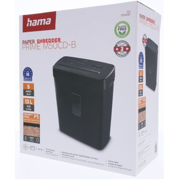 Hama Prime M50CD-B, skartovačka, micro rez, 5 listov, bezpečnostná úroveň P5 T2 E2 O1, čierna