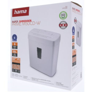 Hama Prime M50CD-W, skartovačka, micro rez, 5 listov, bezpečnostná úroveň P5 T2 E2 O1, biela