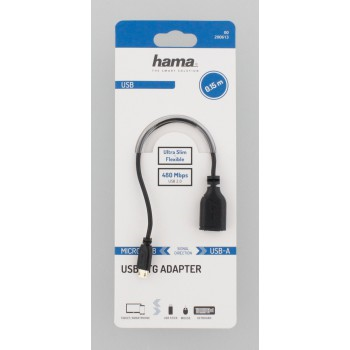 Hama redukcia micro USB na USB-A (OTG), Flexi-Slim, obojstranný konektor, 15 cm, čierna