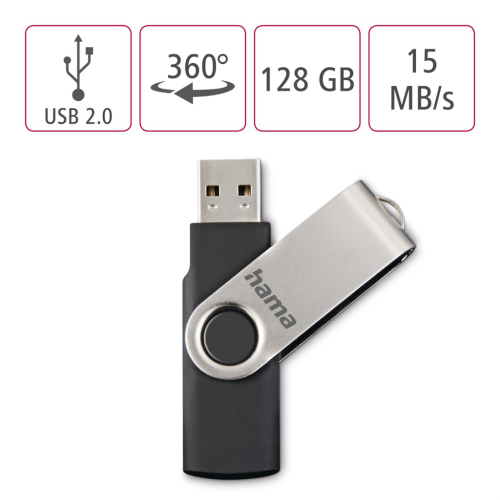 Hama rotate FlashPen, USB 2.0, 128 GB, 6 MB/s, black/silver