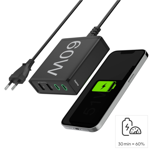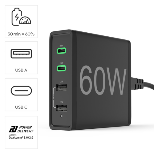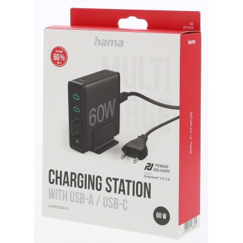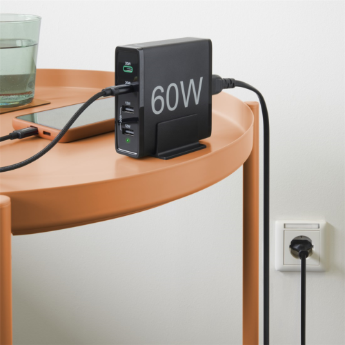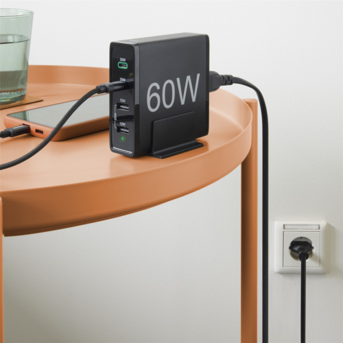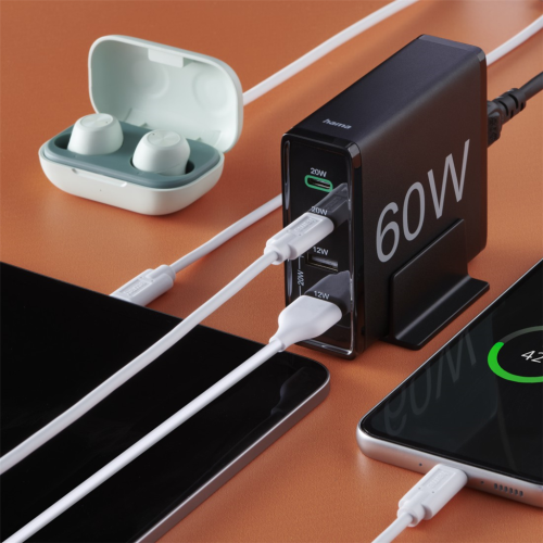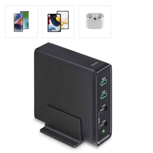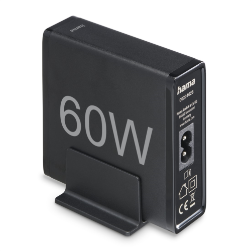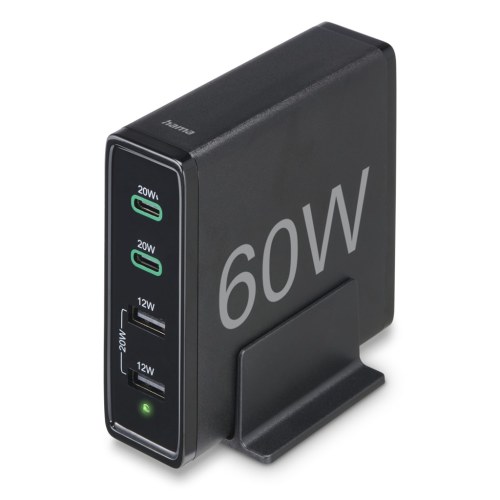 Hama rýchla stolná USB nabíjačka so stojanom, 2x USB-C PD/QC, 2x USB-A, 60 W