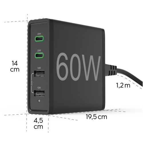 • integrovaná elektronika rozpozná pripojené zariadenie a zaistí bezpečné nabíjanie maximálnou rýchlosťou