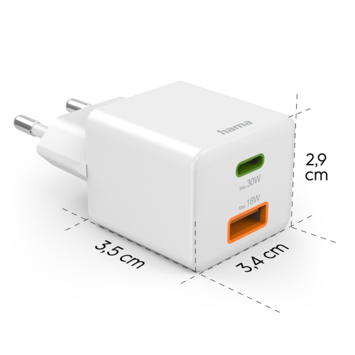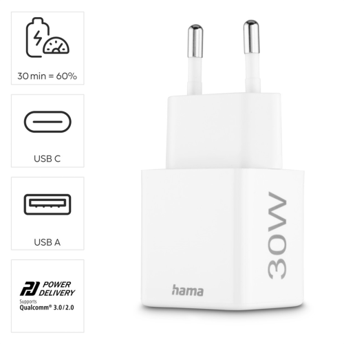 Hama rýchla USB nabíjačka USB-C + USB-A, PD/QC, 30 W