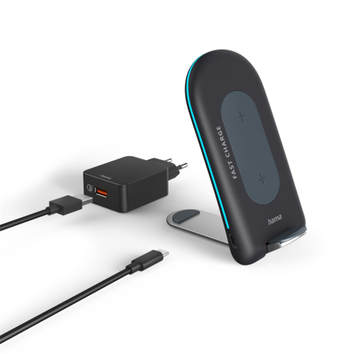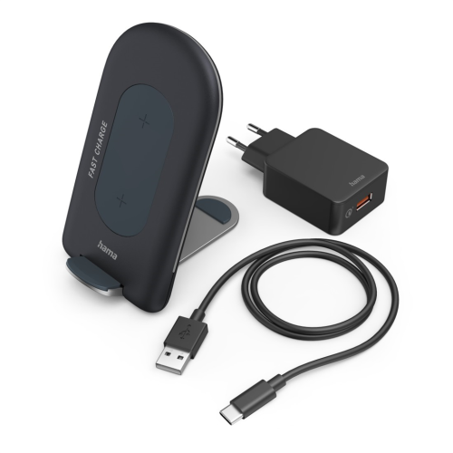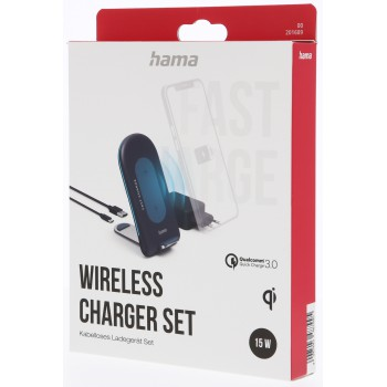 Hama set bezdrôtová nabíjačka/stojan Qi FC15S, 15 W + rýchla sieťová nabíjačka QC 3.0