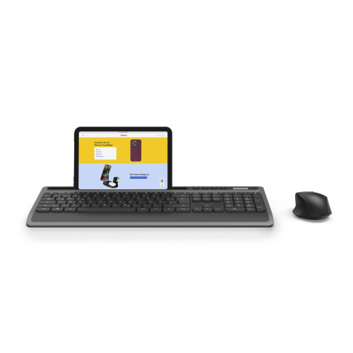 - set bezdrôtovej klávesnice a myši pre pohodlnú prácu - všetko na jednom mieste: či už na doma alebo v práci, s integrovaným držiakom pre tablet alebo smartphone máte všetky zariadenia na očiach Klávesnica: …