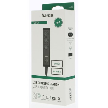 Hama sieťová USB nabíjačka 6x USB, 34 W, káblová