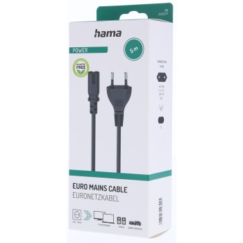 Hama sieťový napájací kábel, euro vidlica, 5 m, čierny