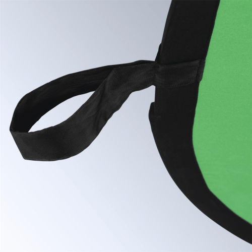 • po obvode je všitý pružný napínací drôt, ktorý zaistí, že bude pozadie absolútne rovné bez záhybov a ideálne napnuté, zároveň slúži na rýchle zloženie pozadia na tretinovú veľkosť pre ľahké prenášanie v kompaktnej veľkosti (priemer cca. 65 cm)