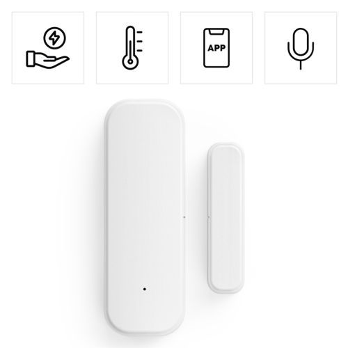 - magnetický senzor na kontrolu okien, dverí, brán a podobne - upozorňuje na otvorené alebo zatvorené dvere/okno, vhodné napríklad na zabezpečenie domu alebo v kombinácii s ďalšími smart produktmi (regulácia …