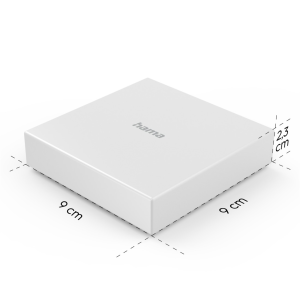 Hub umožňuje pripojenie produktov Hama: radiátorovej hlavice (176592/176593, 176661/176662), okenný senzor (176663), detektor vody (176668).