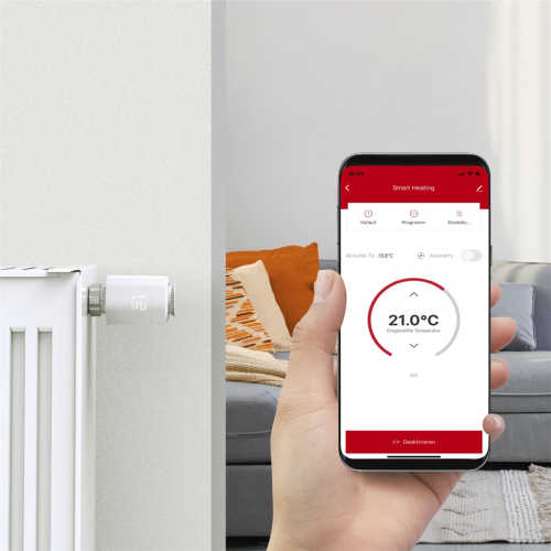 • termostatická regulačná hlavica pre radiátor s nastaviteľnými vykurovacími programami pre časovú reguláciu teploty v miestnosti s možnosťou vzdialeného ovládania mobilnou aplikáciou (cez centrálnu jednotku)