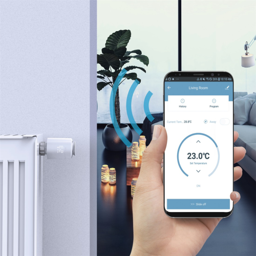 • termostatická regulačná hlavica pre radiátor s nastaviteľnými vykurovacími programami pre časovú reguláciu teploty v miestnosti s možnosťou vzdialeného ovládania mobilnou aplikáciou (cez centrálnu jednotku)