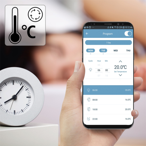 • 4 spínacie body pre zmenu teploty počas dňa, samostatné nastavenie pre všetky dni v týždni