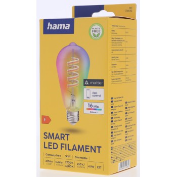 Hama SMART WiFi LED žiarovka, Matter, E27, retro, ST64 Filament, RGBW, stmievateľná, aplikácia