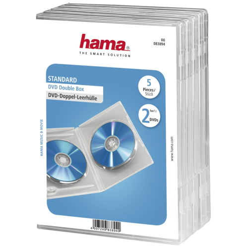 Hama Standard Double, obal na 2 DVD, s fóliou, priehľadný, balenie 5 ks (cena za balenie)