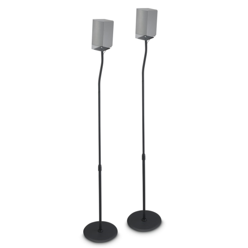 • set dvoch výškovo nastaviteľných podlahových stojanov vhodný pre mini alebo zadné efektové reproduktory