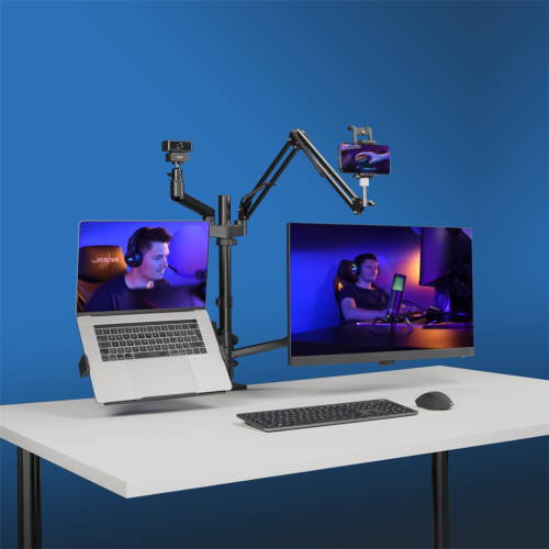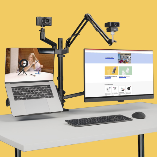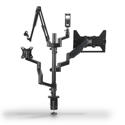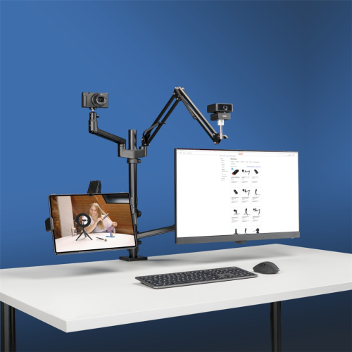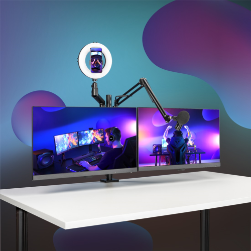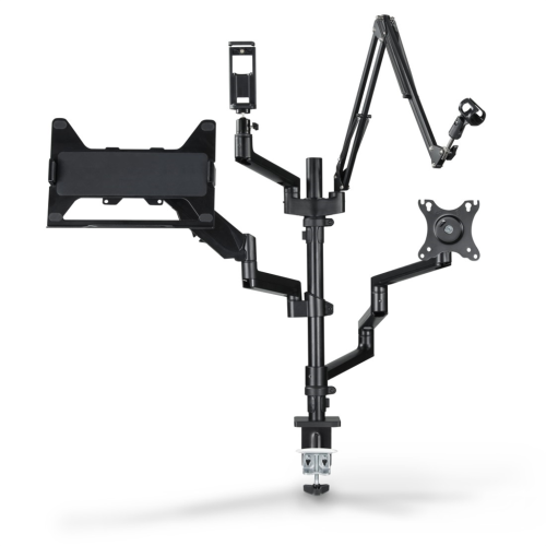 4 ramená pre monitor alebo notebook, tablet alebo mobil, mikrofón, webkameru, kruhové LED svetlo alebo fotoaparát