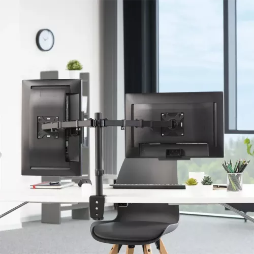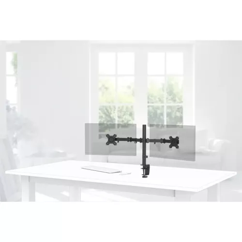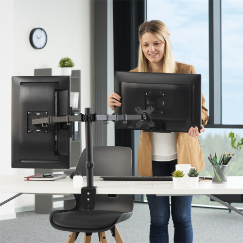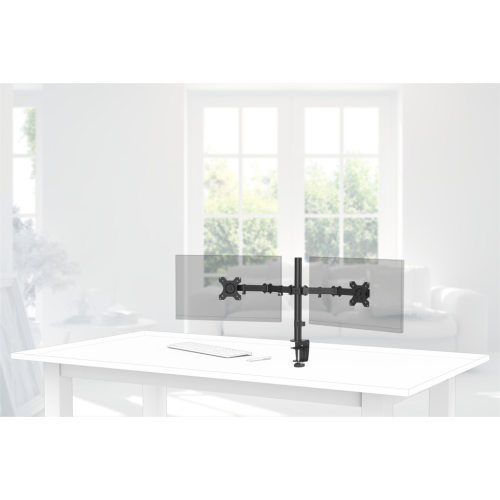 Držiak dvoch monitorov do uhlopriečky 32", upevnenie k stolu, 2 ramená, VESA max 100x100, vrátane náradia pre montáž