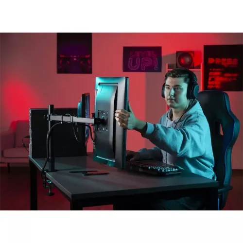 • jednoduchá inštalácia: samostatný VESA modul sa upevní k monitoru a potom jednoducho nasadí na rameno držiaka