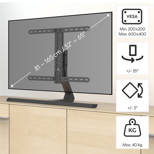 - polohovateľný televízny držiak s moderným dizajnom pre postavenie na stôl alebo inú plochu - vhodné pre televízory s uhlopriečkou cca 81 až 165 cm (32" až 65") - ideálny ako náhrada originálneho stojanu …