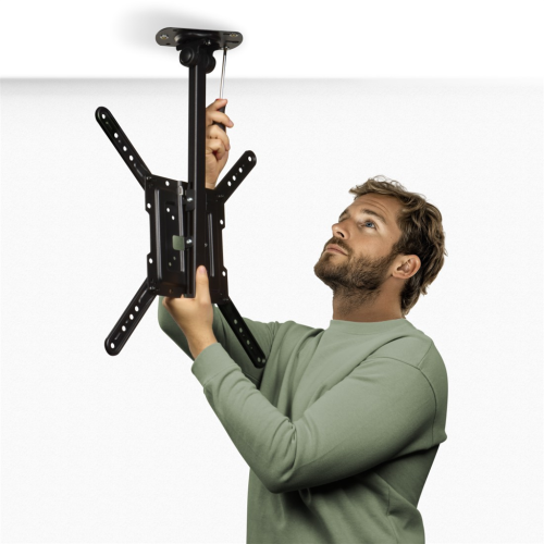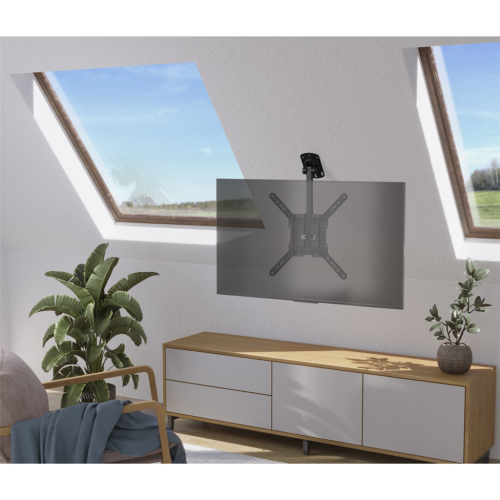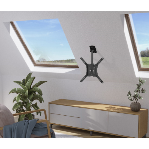 • stropný držiak na upevnenie plochej obrazovky, vďaka kĺbu vhodný aj pre šikmé stropy (napr. do podkrovia)