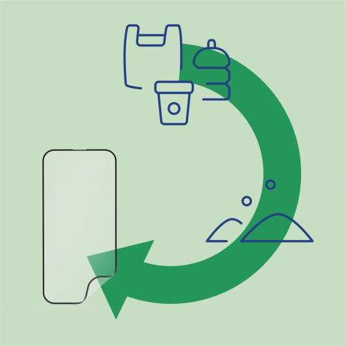 • 100% ochrany displeja a podpornej fólie je vyrobené z recyklovaného PET materiálu (rPET) = až o 50% menej spotrebovanej energie a len 33% CO2 emisií ako pri výrobe bežných nových PET produktov