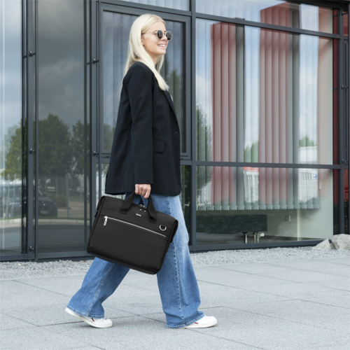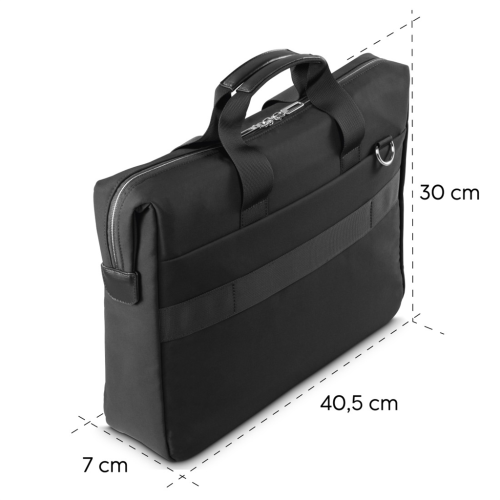 • zapínanie na obojsmerný krytý zips, ktorý je dlhší ako šírka hlavnej priehradky pre ľahšie vyberanie a vkladanie notebooku či hľadanie vecí v taške