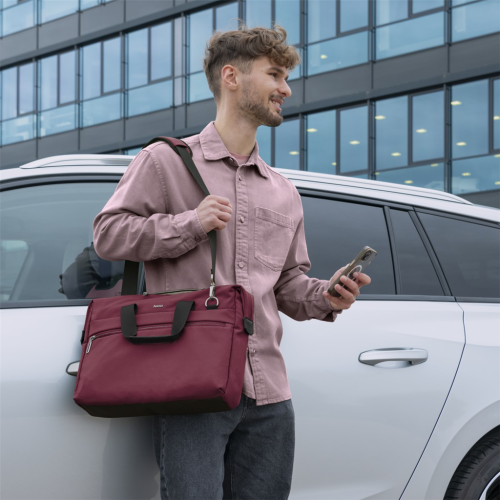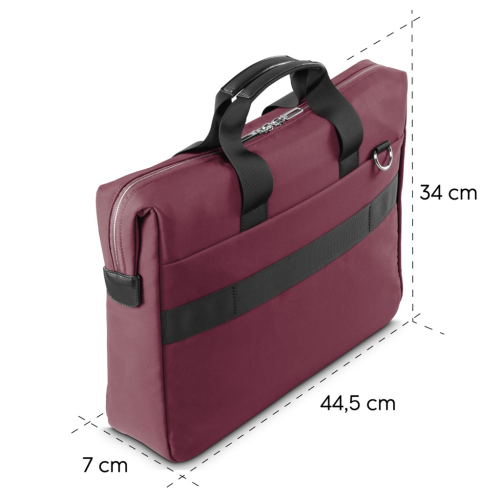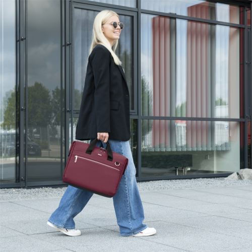 • zapínanie na obojsmerný krytý zips, ktorý je dlhší ako šírka hlavnej priehradky pre ľahšie vyberanie a vkladanie notebooku či hľadanie vecí v taške