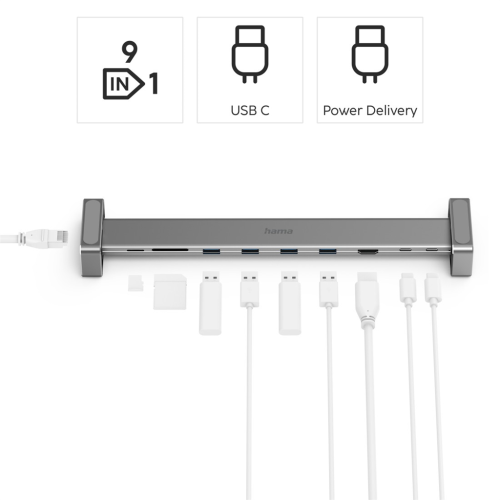 Hama USB-C dokovacia stanica Connect2Office Basic, 9 pripojení, odnímateľné nožičky