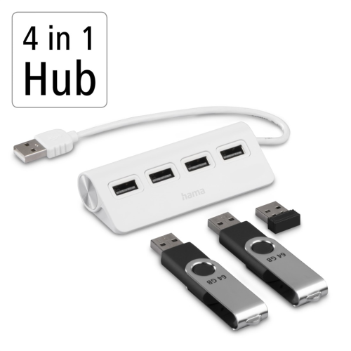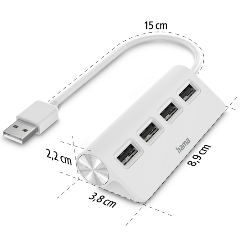 Hama USB hub pre pripojenie až 4 USB zariadení (napr. myš, klávesnica, tlačiareň, USB kľúč) k jednému USB portu, High Speed dátový prenos až 480 Mbit/s
