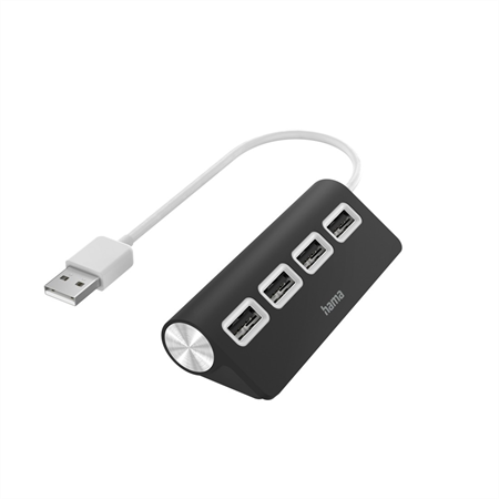 Hama USB hub, 4 porty, USB 2.0, čierny
