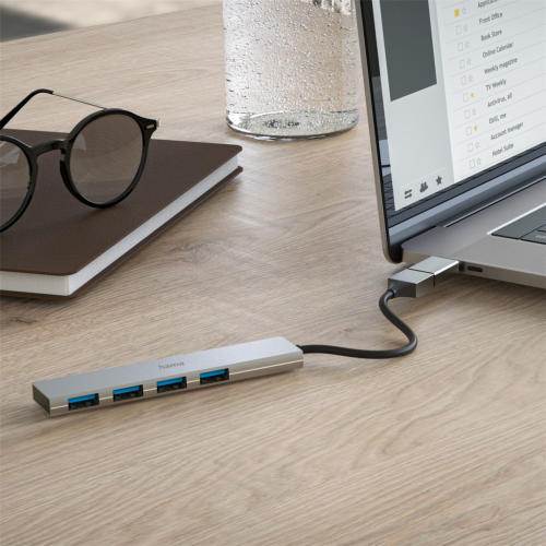 Hama USB hub, 4 porty, USB 3.2, 5 Gb/s, Ultra Slim, USB-C adaptér