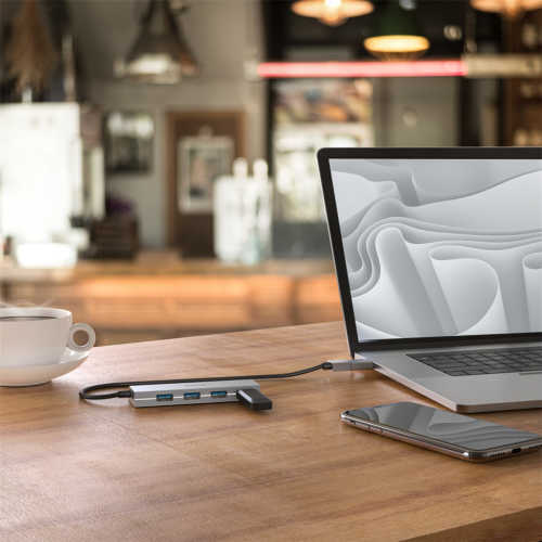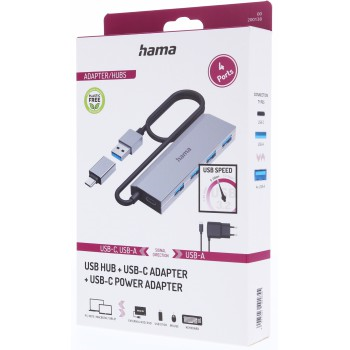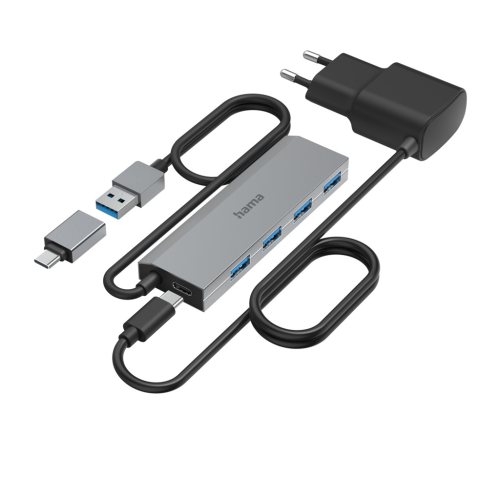 Hama USB hub, 4 porty, USB 3.2, 5 Gb/s, USB-C adaptér, sieťový zdroj