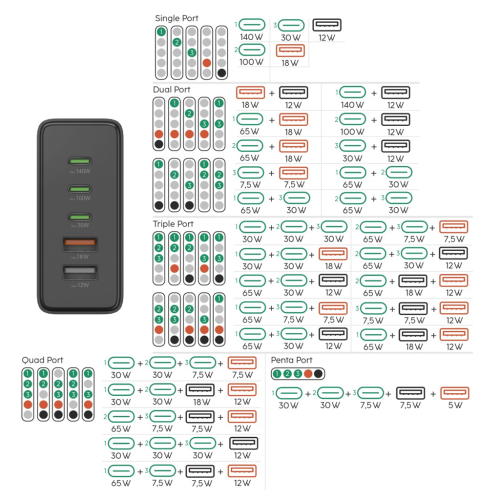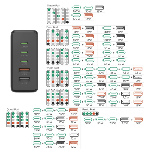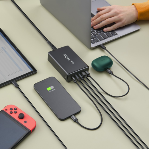 • výkon až 140 W pre jedno zariadenie umožňuje nabíjať aj náročné notebooky s napájaním USB PD