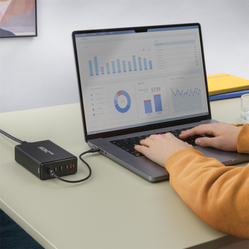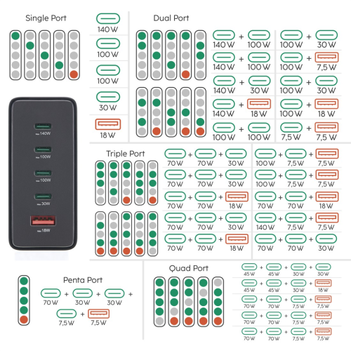 • výkon až 140 W pre jedno zariadenie umožňuje nabíjať aj náročné notebooky s napájaním USB PD