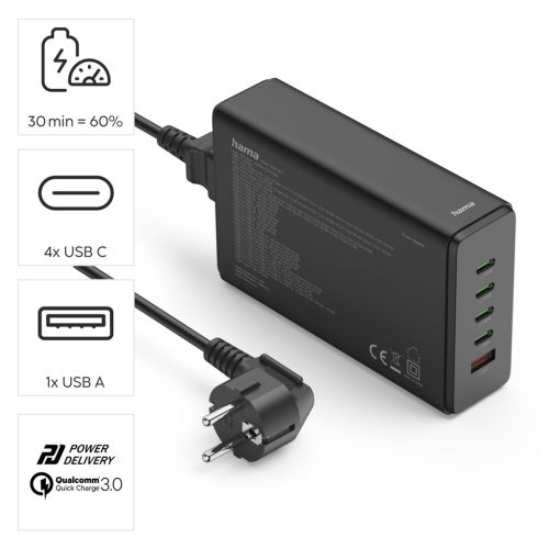 Hama USB nabíjacia stanica GaN, 4x USB-C PD, 1x USB-A QC, 240 W