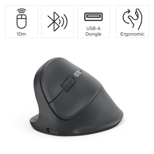 - 8tlačítková ergonomická bezdrôtová optická myš s voliteľným pripojením na tri zariadenia: 1x bezdrôtový USB prijímač a 2x Bluetooth - vertikálne prevedenie predchádza natiahnutiu a bolesti ramien a zápästia …