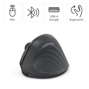 - 8tlačítková ergonomická bezdrôtová optická myš s voliteľným pripojením na tri zariadenia: 1x bezdrôtový USB prijímač a 2x Bluetooth - vertikálne prevedenie predchádza natiahnutiu a bolesti ramien a zápästia …