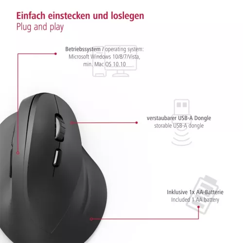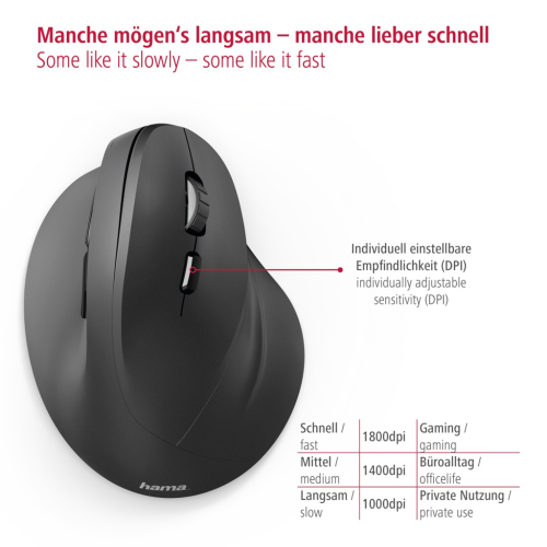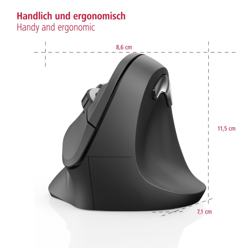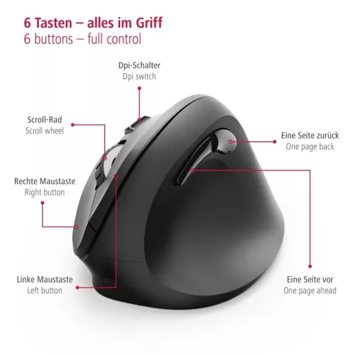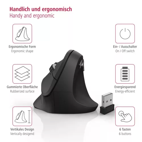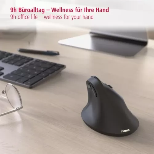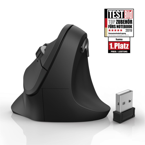 Hama vertikálna ergonomická bezdrôtová myš EMW-500, 6 tlačidiel, čierna